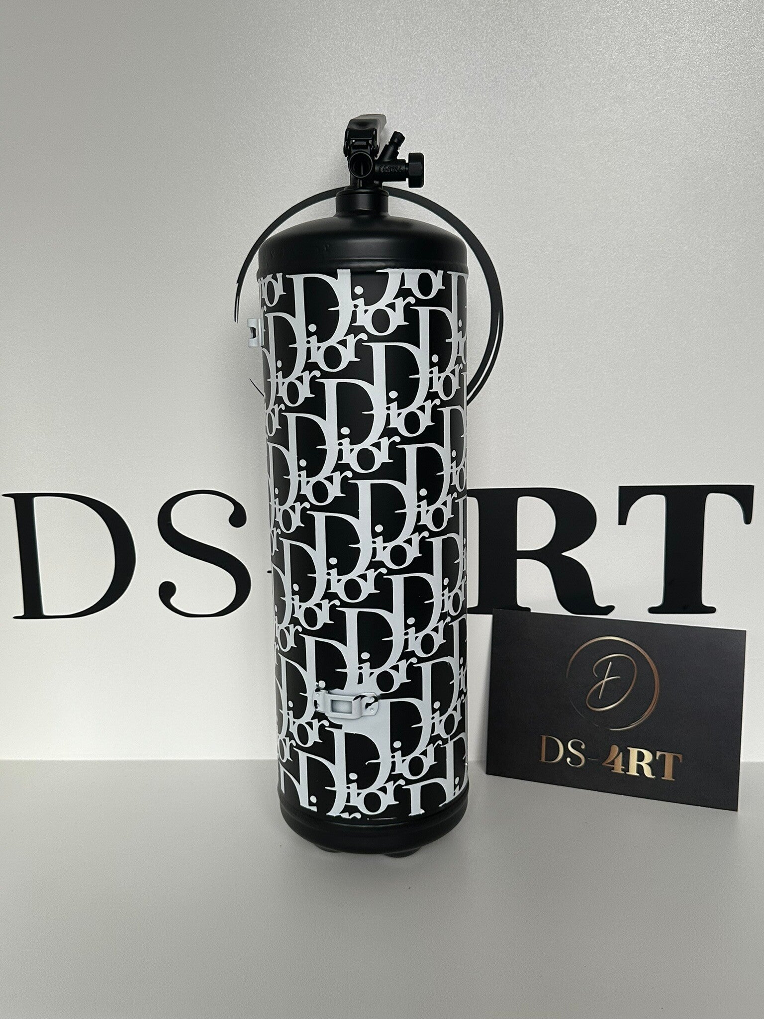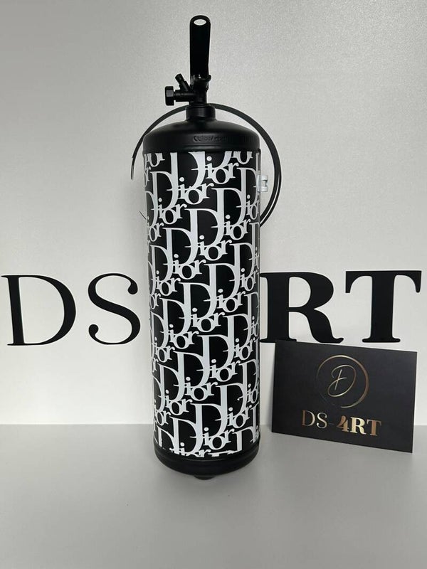 Voeg een statement toe aan je interieur met deze exclusieve Dior Brandblusser – een handgemaakt kunstwerk met een luxe uitstraling en een knipoog naar iconische merken.